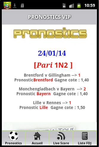 Vous ne connaissez pas Bet Foot ?C'est un professionel du paris sportifs, vivant grâce à cela, qui donne des pronostics tout les jours.Déjà plus de 10 000 personnes le suivent sur Facebook !Dans son application, vous retrouverez :- Des analyses complètes chaque jours.- Une partie de pronostics VIP posté chaque jours avec un taux de reussite de plus de 80%!Suivez tout les scores en direct sur le Livescore. Bon gains !